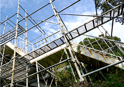 中島建工では、現在公共事業の仮設足場工事を中心に仕事を行っています。